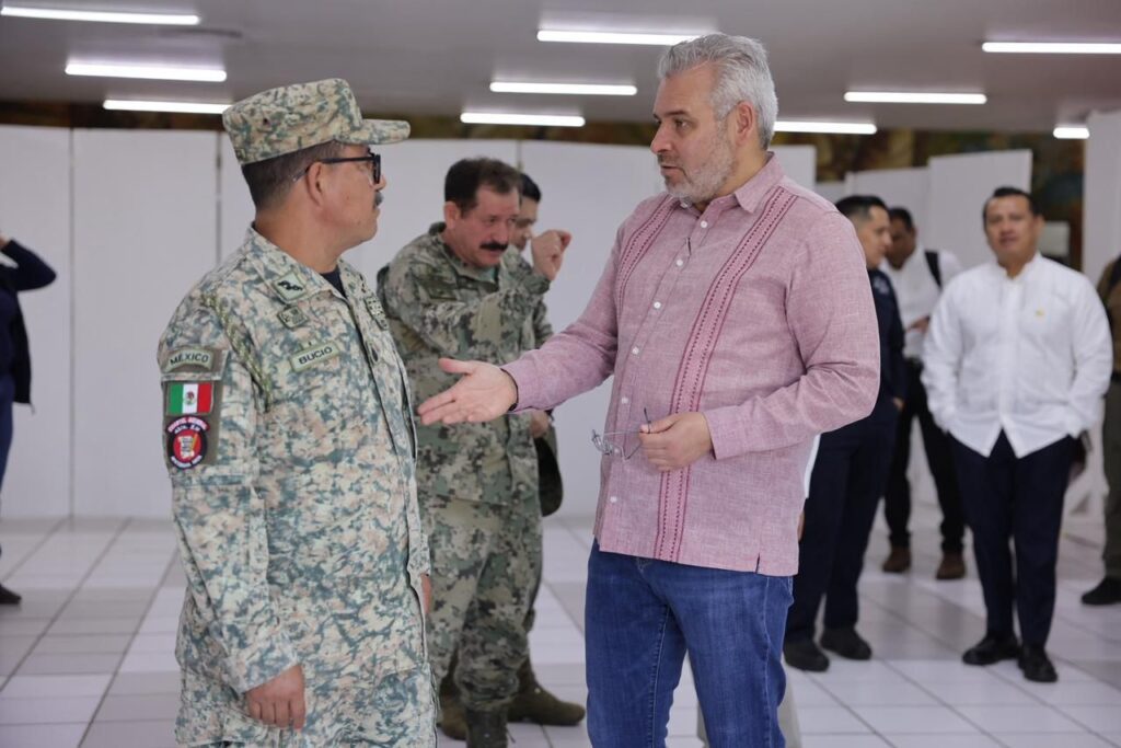 En la reunión participaron el comandante de la 21 Zona Militar, Juan Bravo; el comandante de la 43 Zona Militar, José Luis Bucio Quiroz; el vicealmirante de la 16 Zona Naval, Camerino Roa Vidal; el coordinador estatal de la Guardia Nacional, Roberto Molina; el secretario de Gobierno, Raúl Zepeda Villaseñor; el Fiscal del Estado, Carlos Torres Piña; el secretario de Seguridad Pública, Antonio Cruz y otros.