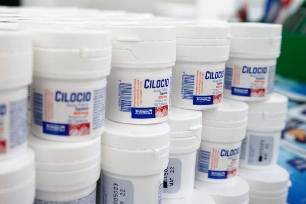 El ácido fólico o vitamina B9, es un micronutriente de suma importancia durante el embarazo que ayuda a la construcción del tubo neural del bebé y fortalece su sistema inmune durante el periodo de gestación; en 2021 la SSM distribuyó un estimado de 82 mil 212 frascos de ácido fólico a embarazadas y mujeres en edad fértil.