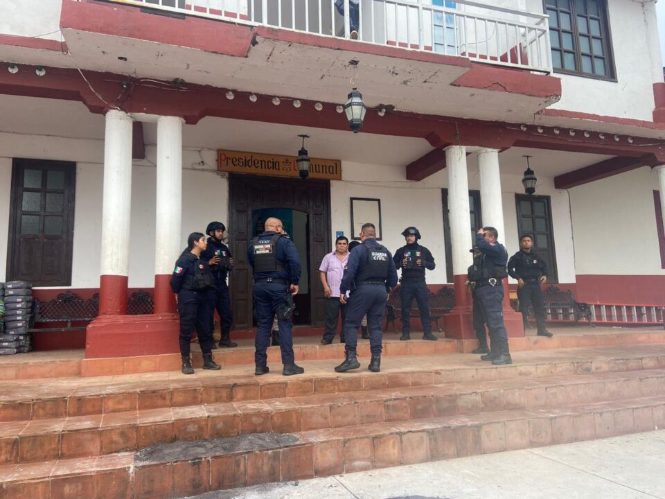 Ziracuaretiro, Michoacán, 24 de agosto de 2024.- Con el compromiso de garantizar la seguridad y el bienestar en la localidad de San Ángel Zurumucapio, elementos de la Secretaría de Seguridad Pública (SSP) y personal de la Policía Comunal mantienen labores conjuntas para garantizar el orden público de la población.