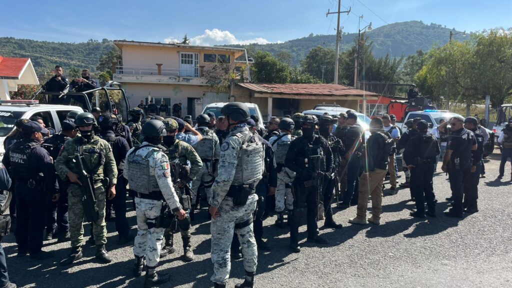 Los efectivos federales, a cargo del general Ernesto Joaquín Geminiano Jiménez, comandante de la 21 Zona Militar, realizan acciones conjuntas con los elementos de la Guardia Civil al mando del subsecretario José Ortega.