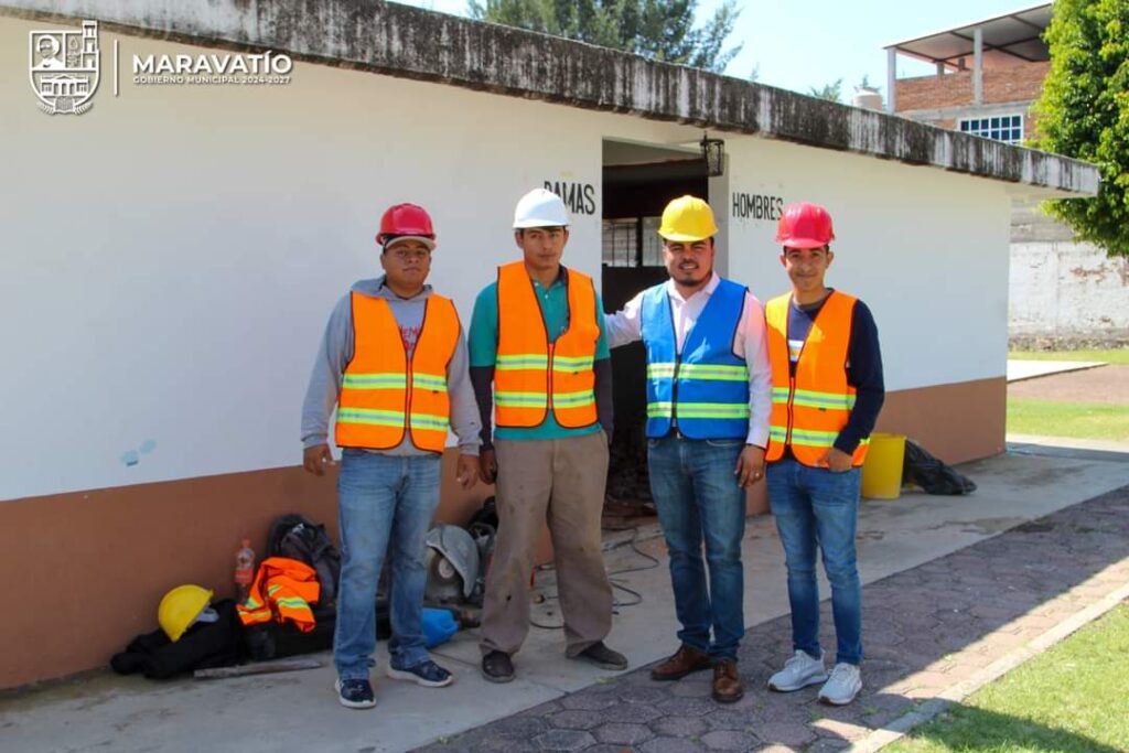 Maravatío, Michoacán.- El presidente municipal de Maravatío C.D.E.O. Mario Pérez Flores, acompañado de directivos y personal de la Dirección de Obras Públicas, Deporte y Protección Civil, encabezó el inicio de la remodelación de los baños en la Unidad Deportiva.