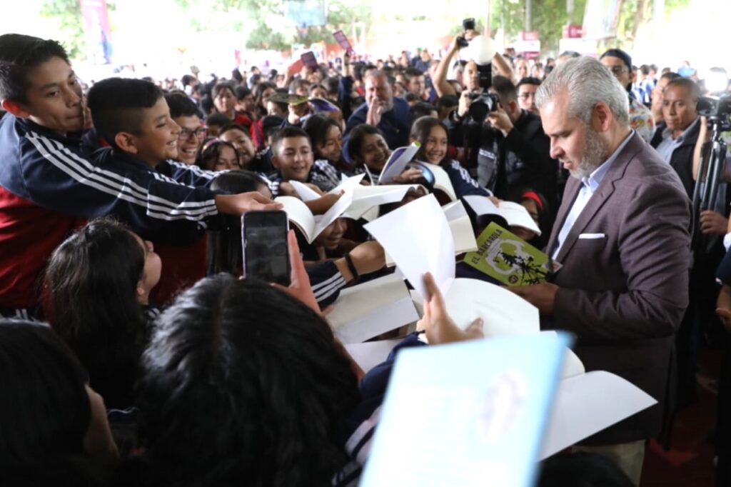 Además, informó que este año con el programa “En Michoacán se Lee” también se entregarán 200 mil libros de lectura para primarias y secundarias de zonas priorizadas en todas las regiones de Michoacán.