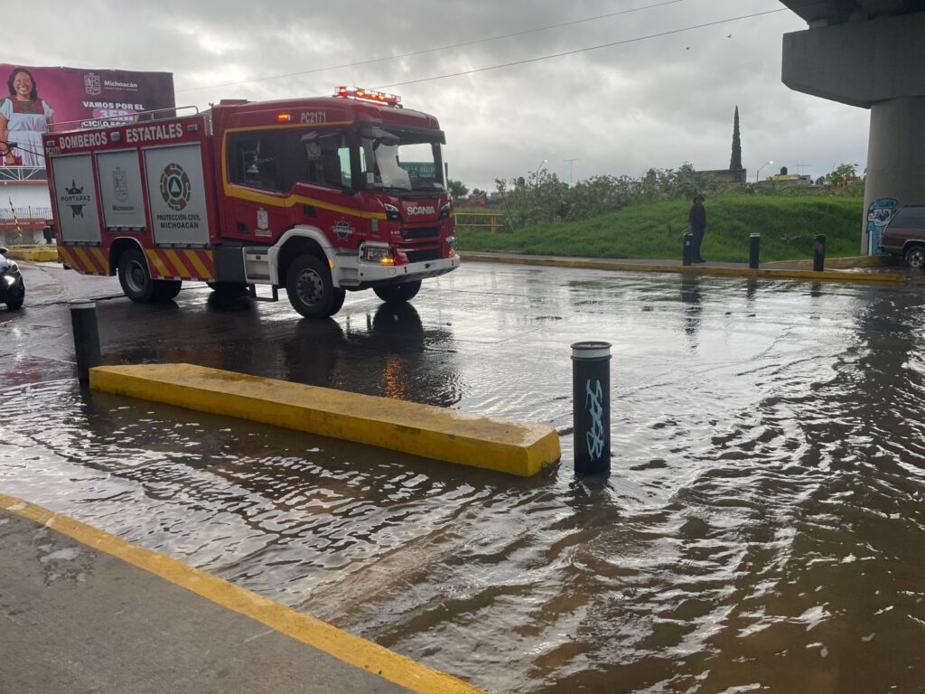 En la colonia Jaujilla, debido al ingreso de agua a diversos domicilios, elementos de Protección Civil estatal realizan labores de apoyo en las viviendas y mantienen recorridos de monitoreo por diversas zonas de la capital michoacana.
