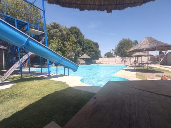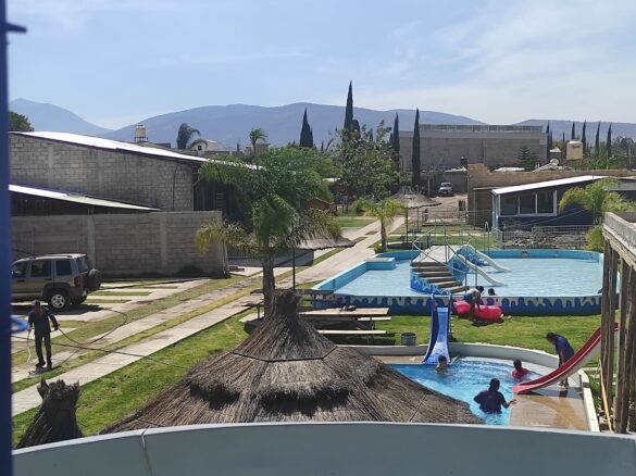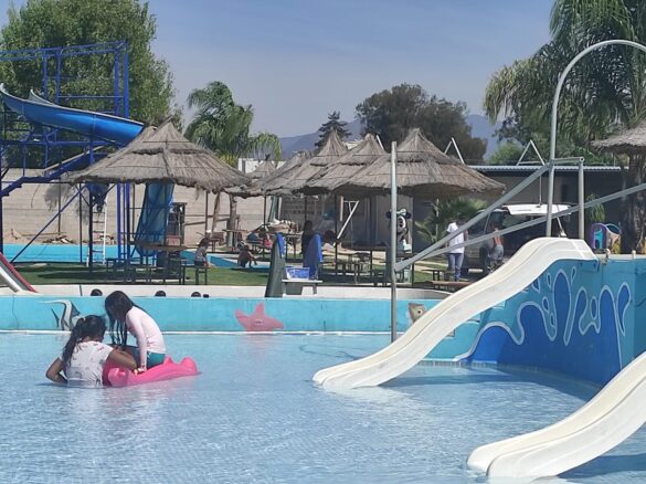 El balneario cuenta con 3 albercas para pequeños, medianos y grandes, además de un tobogán y palapas con asientos.