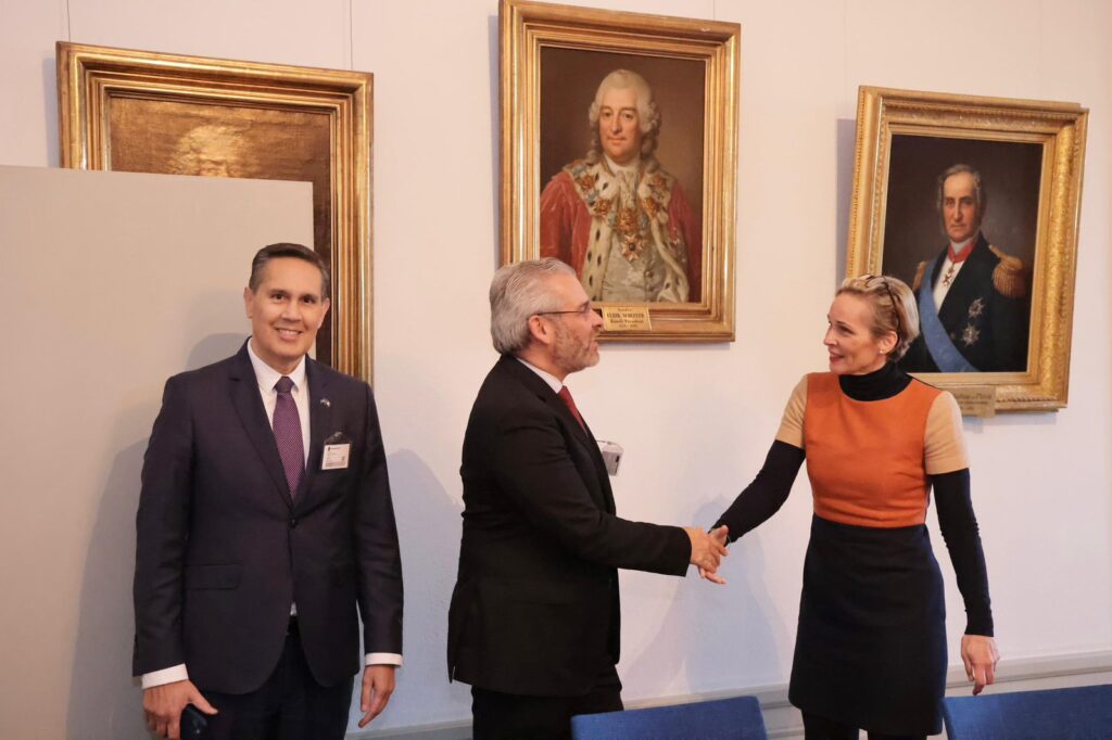 Estocolmo, Suecia, 3 de noviembre de 2024.- El gobernador Alfredo Ramírez Bedolla y la directora general para las Políticas Comerciales, Ministerio de Comercio y Cooperación Internacional de Estocolmo, Camilla Mellander, acordaron fortalecer vínculos para la cooperación comercial entre Michoacán y Suecia.
