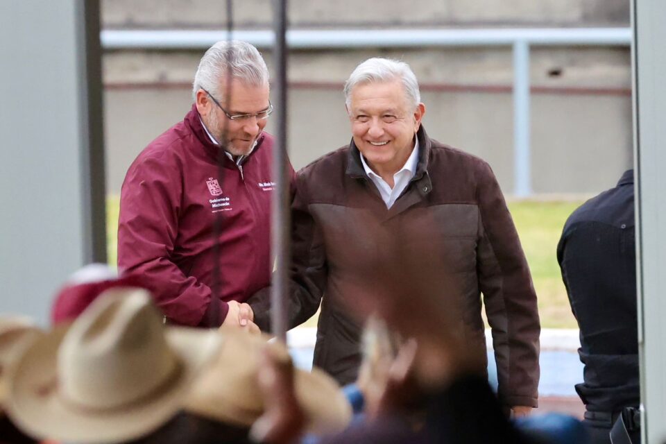 Morelia, Michoacán, 16 de febrero de 2024.- El gobernador Alfredo Ramírez Bedolla y el presidente de la República, Andrés Manuel López Obrador refrendaron el compromiso de continuar el apoyo a la población a través de programas del Bienestar.