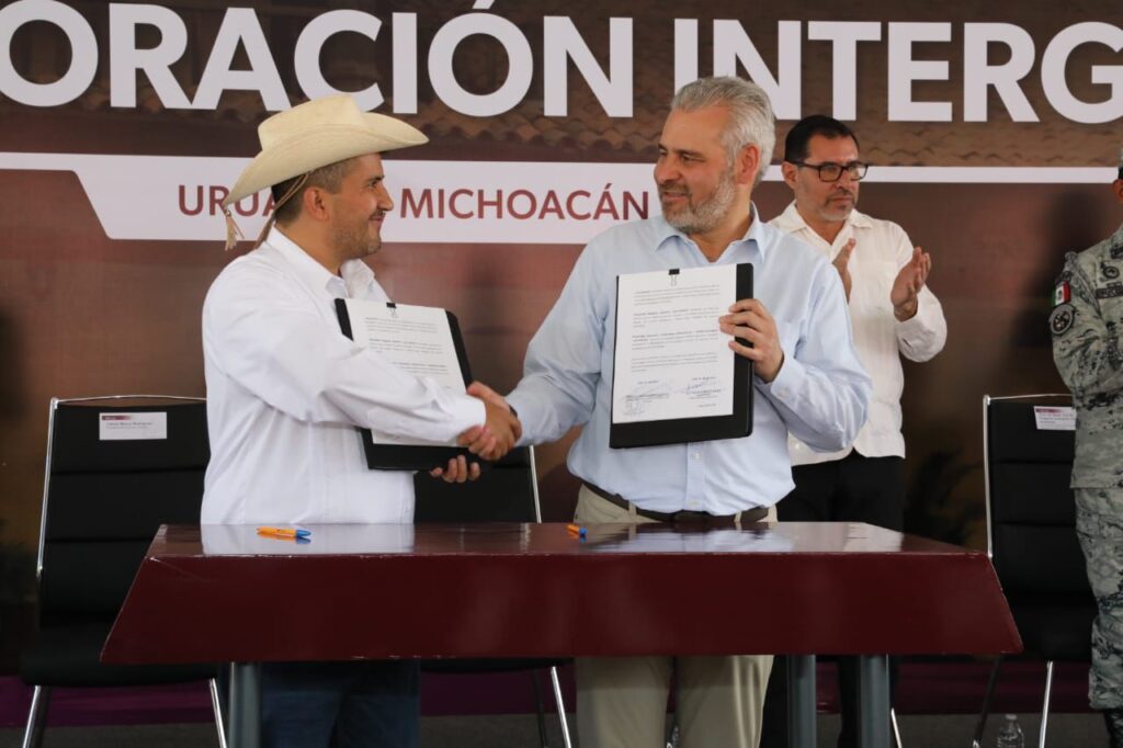 El alcalde de Uruapan, Carlos Manzo Rodríguez, dijo que este convenio entre el municipio y el estado tiene la finalidad de fortalecer los trabajos para mejorar el entorno social; además, manifestó que todas las fuerzas de seguridad serán bienvenidas para trabajar por el bien de la población.