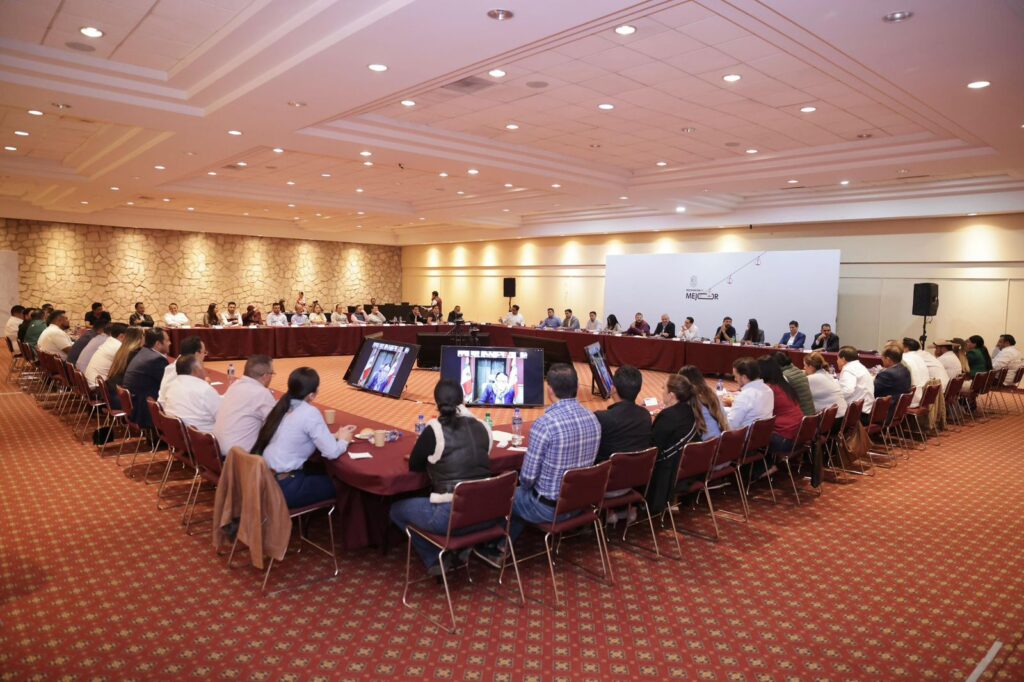 Con el propósito de establecer una mejor coordinación entre autoridades de los tres niveles de gobierno, el mandatario estatal y la funcionaria federal sostuvieron diálogo directo con alcaldes del Norte y Sur de la entidad para escuchar sus opiniones y necesidades a fin de fortalecer la estrategia integral de coordinación.