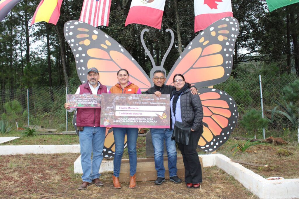 Morelia, Michoacán.- Con la entrega de un millón de dólares por parte del Gobierno de Michoacán para el Fondo Monarca, se beneficiarán directamente 7 mil 824 ejidatarios y comuneros, quienes percibirán un aumento en su pago por servicios de ambientales para la conservación de la zona núcleo de la Reserva de la Biósfera de la Mariposa.