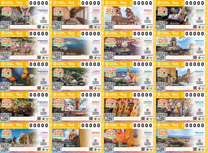 Con la emisión del billete del Sorteo Mayor No. 3855 se da continuidad a la difusión de la riqueza cultural de nuestro país, donde la Secretaría de Turismo del Gobierno de México, la Lotería Nacional y la Secretaría de Turismo de Michoacán celebran los Pueblos Mágicos michoacanos, conformados por nueve localidades emblemáticas: Cuitzeo, Jiquilpan, Mineral de Angangueo, Paracho, Pátzcuaro, Santa Clara del Cobre, Tacámbaro, Tlalpujahua y Tzintzuntzan.