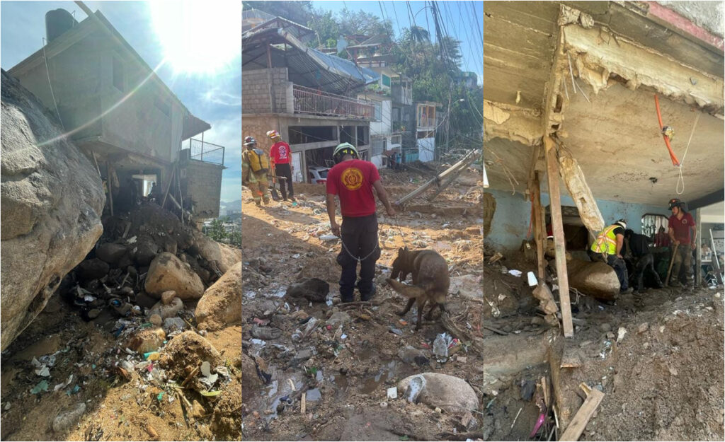 En la calle Juan N. Álvarez en la Colonia 20 de noviembre de Acapulco, un domicilio fue enterrado por lodo y una enorme roca de 50 toneladas que derribó parte de la casa, por lo que los bomberos utilizaron un binomio canino para la búsqueda de cuerpos, logrando recuperar el de tres adultos de 40 ,39 y 21 años de edad, respectivamente, además de los de dos menores de 2 y 12 años.