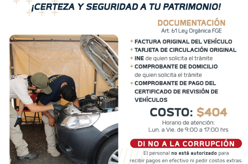 Se trata de un documento administrativo, expedido únicamente por la FGE, a las personas que requieran comprobar que un vehículo no cuenta con reporte de robo ni presenta alteraciones en sus medios de identificación.