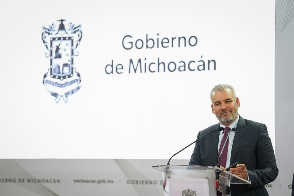 Morelia, Michoacán, 15 de agosto de 2024.- El gobernador Alfredo Ramírez Bedolla propuso a la presidenta electa Claudia Sheinbaum Pardo, la construcción de un metrobús para la ciudad de Morelia, que recorrería en 33 minutos 28 kilómetros desde Villas del Pedral hasta Ciudad Salud.