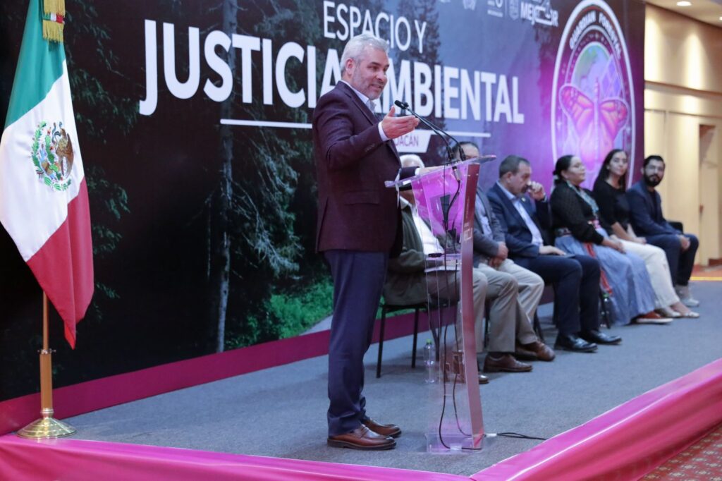 Morelia, Michoacán, 18 de noviembre de 2024.- Como parte del fortalecimiento de las acciones de protección a los recursos naturales de Michoacán, el gobernador Alfredo Ramírez Bedolla inauguró el coloquio internacional Espacio y Justicia Ambiental en el que participan especialistas de la NASA en el desarrollo de tecnologías para el cuidado del medio ambiente.