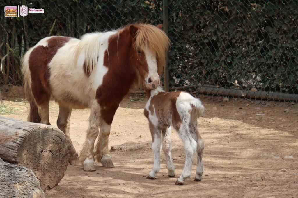 Morelia, Michoacán, 25 de febrero de 2024.- Un adorable poni nació en el Zoológico de Morelia; después de una década se logró la exitosa reproducción de esta especie.