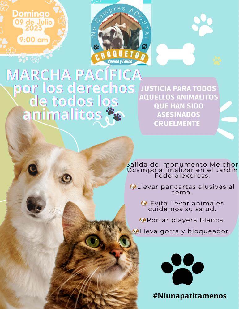 Se pide llevar pancartas alusivas al tema ya que se pedirá justicia por los animalitos que han Sido maltratados cruelmente.