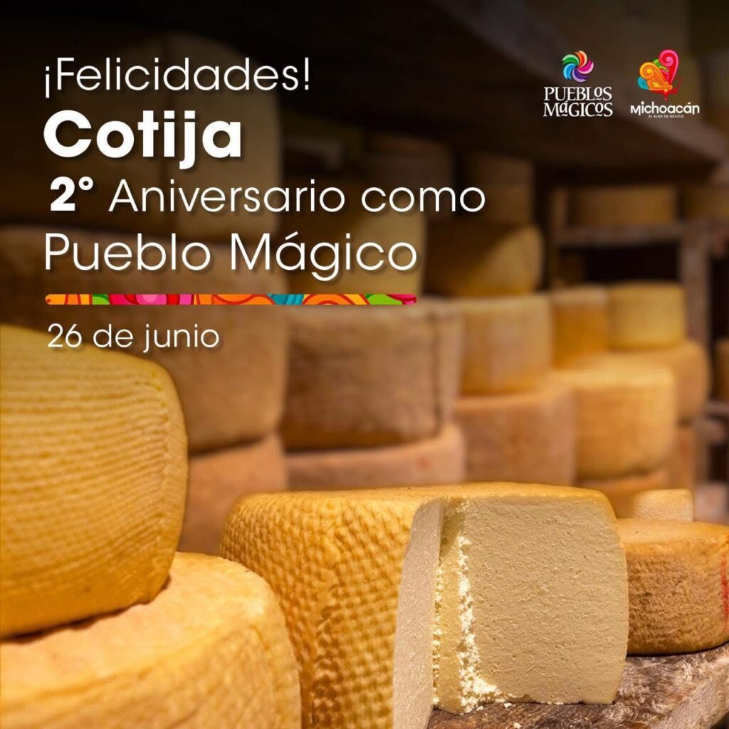 A través de redes sociales turísticas de la dependencia estatal se recordó esta fecha importante para Michoacán con el siguiente texto: “Cotija, uno de los más recientes Pueblos Mágicos, te abre sus puertas con encanto, tradición y muchas sorpresas por descubrir. Haz una parada en este rincón único de Michoacán y déjate conquistar por su historia, sabor y belleza”.