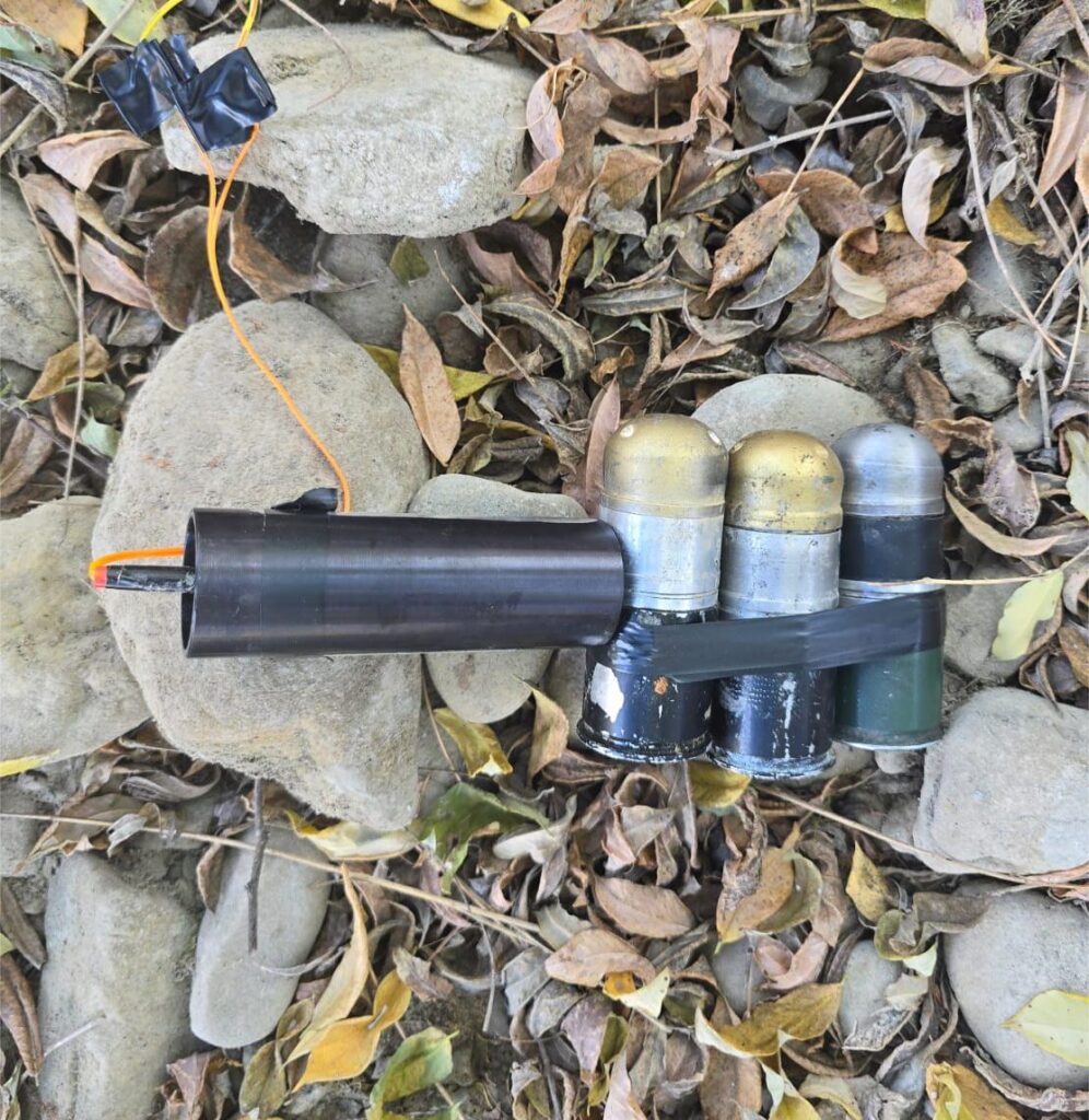 Coahuayana, Michoacán, 8 de diciembre de 2025.- Elementos de la Secretaría de Seguridad Pública (SSP) aseguraron y desactivaron tres artefactos explosivos improvisados en el municipio de Coahuayana, producto de las tareas del Plan Paricutín.