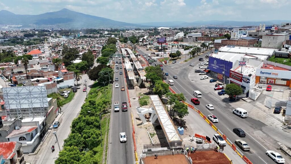 La infraestructura contará con dos estructuras elevadas de tres carriles, además de espacio público en bajopuente con mesetas seguras, para optimizar la movilidad del tránsito peatonal y vehicular en la zona, donde está por concluir la colocación de trabes metálicas del puente sur, mientras se desarrolan los cimientos del puente norte.