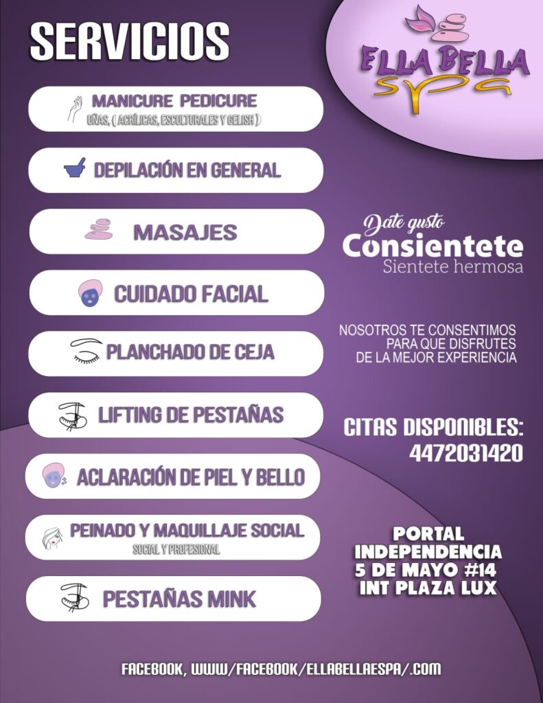 Maravatío, Michoacán.- En el centro del municipio de Maravatío se encuentra «Ella Bella Spa» un establecimiento inovador con múltiples servicios para consentirte.