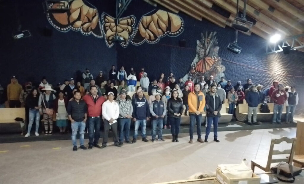 Participaron más de 100 personas, principalmente ejidatarios, cocineras tradicionales, caballerangos y otros prestadores de servicios que atenderán de manera directa al visitante nacional y extranjero durante la temporada de hibernación de la mariposa monarca en los bosques del Oriente michoacano.