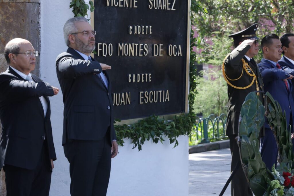 Durante el acto, el mandatario junto a autoridades estatales, militares e invitados, montaron una guardia de honor en el monumento a los Niños Héroes, donde se encuentran inscritos los nombres del teniente Juan de la Barrera, así como de los cadetes, Agustín Melgar, Francisco Márquez, Vicente Suárez, Fernando Montes de Oca y Juan Escutia.
