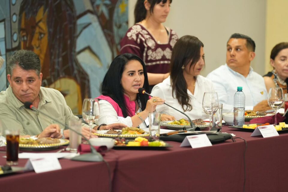 Uruapan, Michoacán, 20 de agosto de 2025.- La secretaria de Desarrollo Urbano y Movilidad, Gladyz Butanda Macías, expuso ante empresarias, empresarios, líderes productores y referentes sociales la serie de obras que el Gobierno de Michoacán ha ejecutado en Uruapan para potenciar su expansión económica, por un monto superior a los 5 mil millones de pesos.