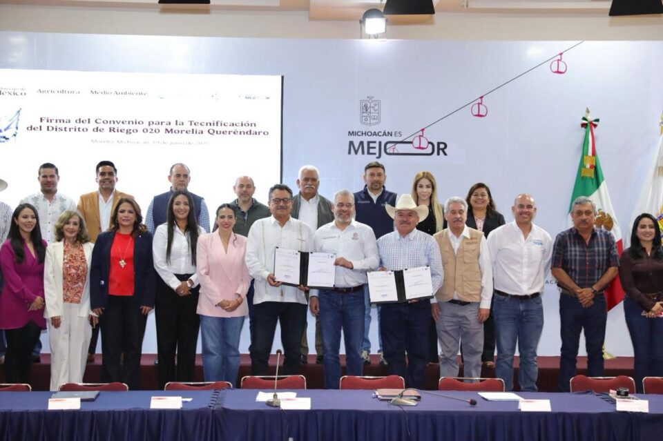 Morelia, Michoacán, 19 de junio de 2025.- El gobernador Alfredo Ramírez Bedolla firmó un convenio con la Comisión Nacional del Agua (Conagua) para tecnificar los módulos de riego II, III y IV del Distrito de Riego 020 Morelia-Queréndaro con una inversión de 220 millones de pesos.