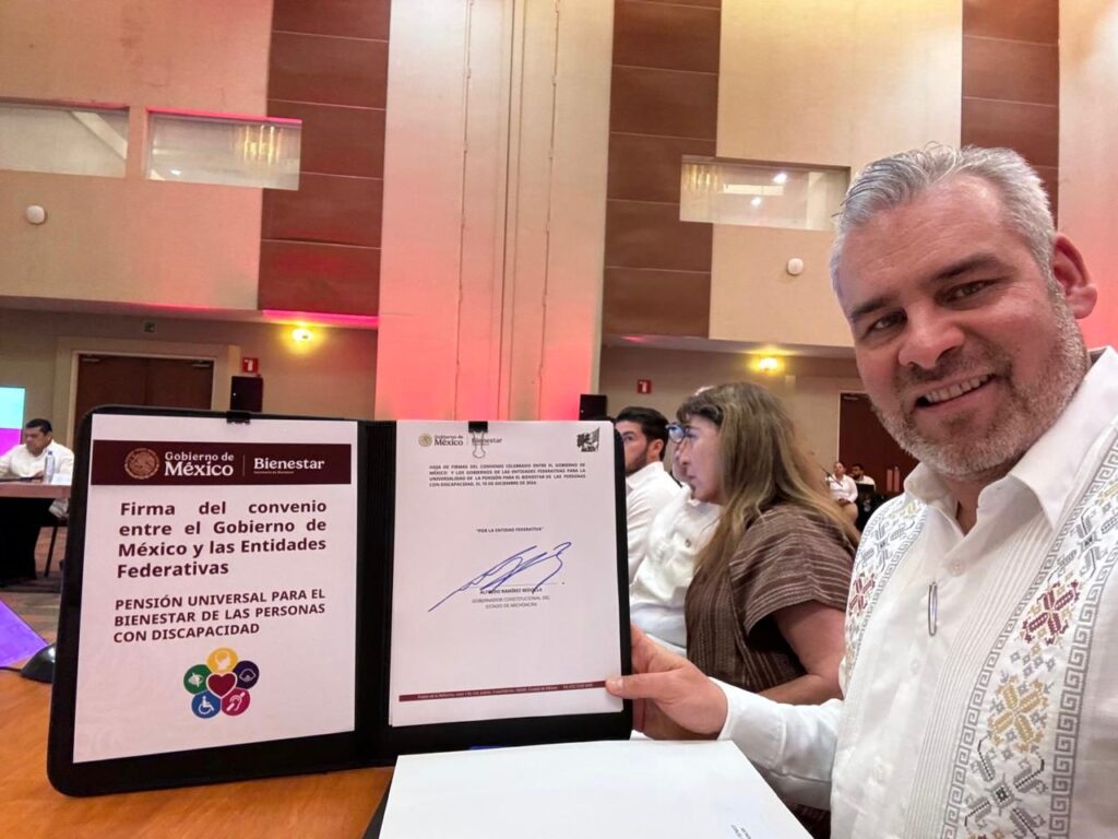 Recordó que en Michoacán opera el programa estatal de pensión para el bienestar de las personas con discapacidad de 30 a 64 años de edad, con un apoyo bimestral de 2 mil 950 pesos.
