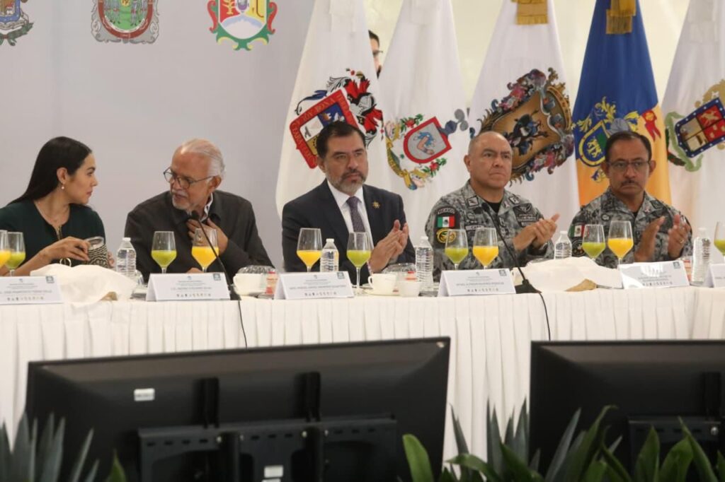 Se llevó a cabo una mesa de trabajo entre los estados de las regiones Occidente y Centro Occidente del país, con el objetivo de coordinar acciones operativas conjuntas y blindar las zonas limítrofes. La reunión contó con la participación de gobernadores, autoridades municipales y mandos regionales de las Secretarías de Seguridad Pública, de la Defensa Nacional y de la Marina, así como Fiscalías Generales.
