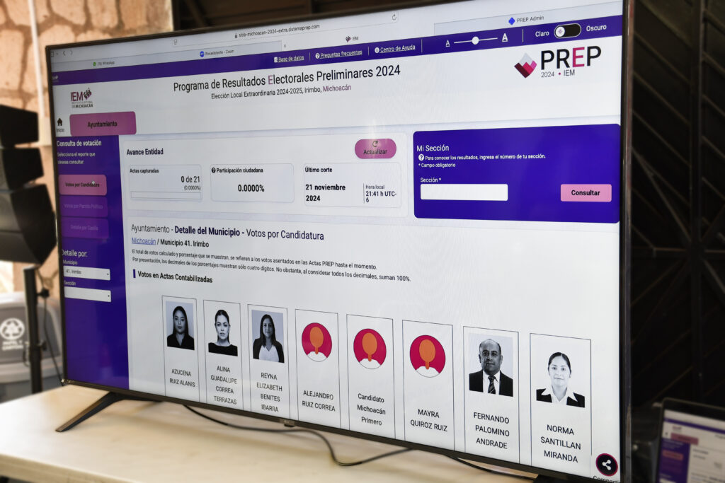 Morelia, Michoacán a 25 de noviembre de 2024.- El Instituto Electoral de Michoacán (IEM) llevó a cabo este domingo el segundo de tres simulacros del Programa de Resultados Electorales Preliminares (PREP), como parte de los preparativos para las elecciones extraordinarias en el municipio de Irimbo, que se celebrarán el próximo 8 de diciembre.