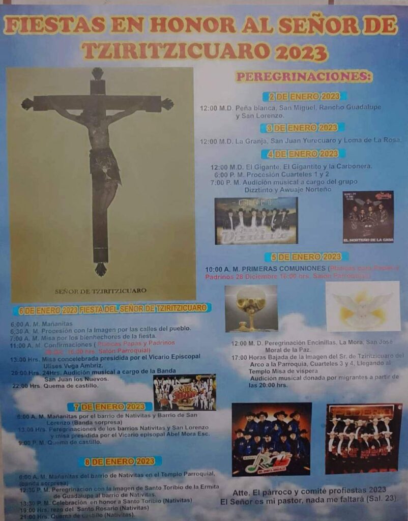 Maravatío, Michoacán.- Del 2 al 8 de enero, comienzan las actividades de la fiesta patronal en honor al Señor de Tziritzícuaro.