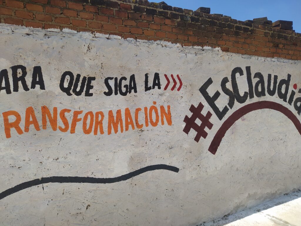 Maravatio, Michoacán.- Desde hace algunas semanas, aparecieron unas pintas en bardas de calles de Maravatío con la leyenda «Para que la transformación siga, #EsClaudia».