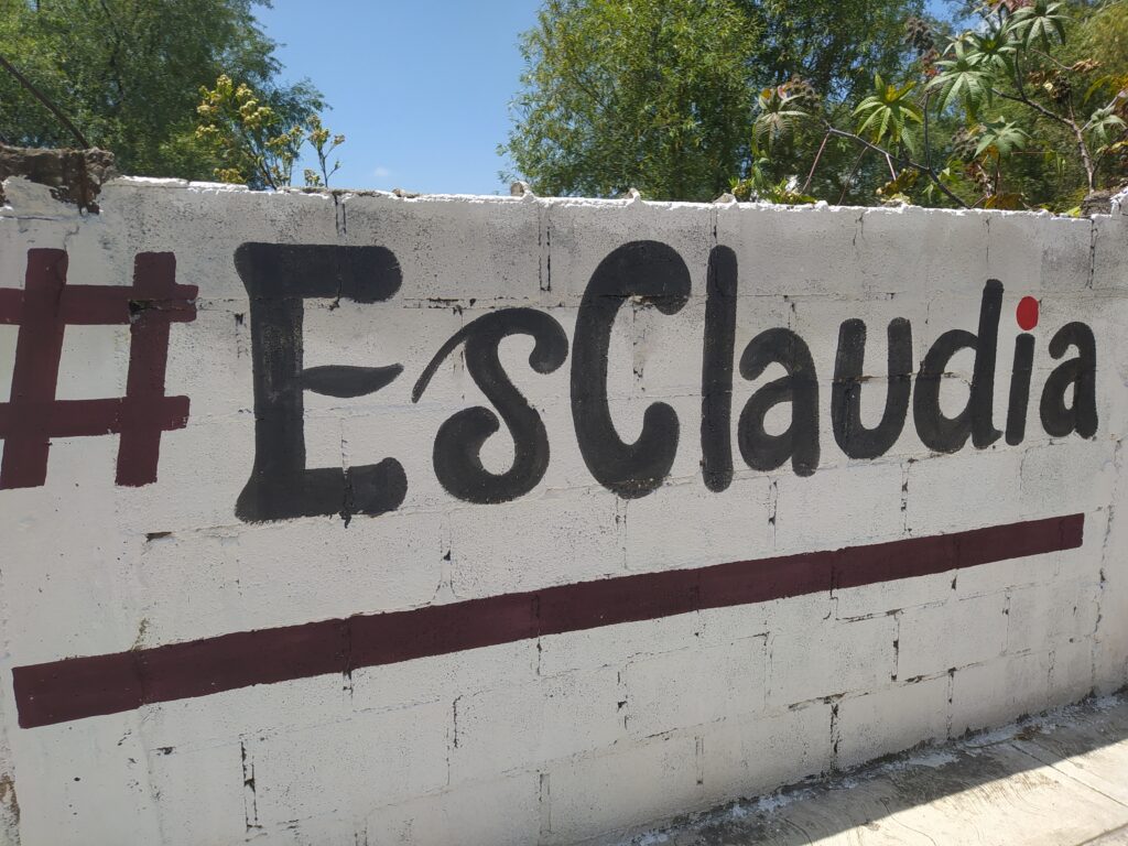 Maravatio, Michoacán.- Desde hace algunas semanas, aparecieron unas pintas en bardas de calles de Maravatío con la leyenda «Para que la transformación siga, #EsClaudia».