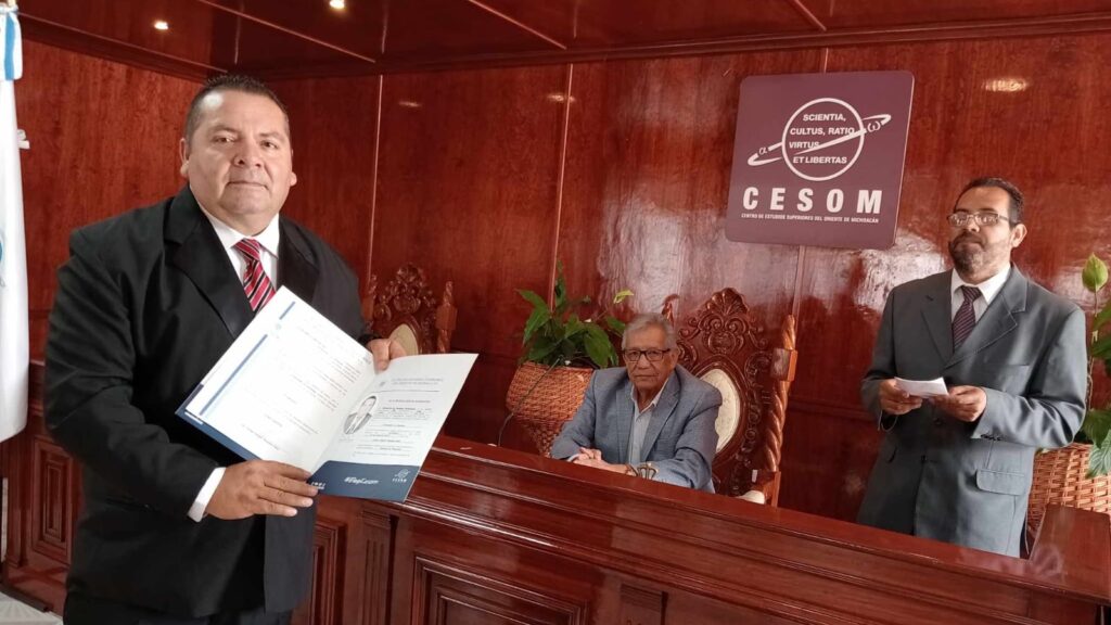 Maravatio, Mich.- El Lic. Carlos Alberto Sánchez Soto tomo protesta en la Licenciatura de Derecho por el CESOM Centro de Estudios Superiores del Oriente de Michoacán, entregada su constancia que así lo acredita por parte del Rector del CESOM Dr en Educación Juan Manuel Almanza Bedolla.