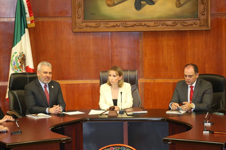 El gobernador felicitó a las magistradas y magistrados del Tribunal en materia Anticorrupción y Administrativa del Estado, Lizett Puebla Solórzano, Swany Peña Reyes, Azucena Marín Correa, Carlos Enrique Verduzco Hurtado y Sergio Alberto Martínez Ocampo, por velar por los derechos de la ciudadanía, frente al Gobierno estatal o los gobiernos municipales.