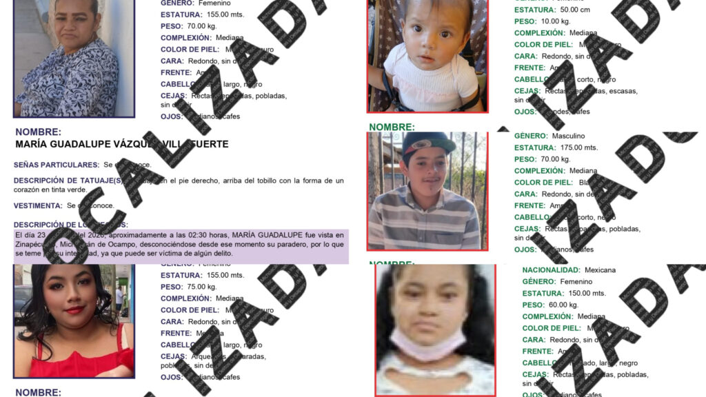Se trata de María Guadalupe Vázquez Villafuerte, de 43 años; Alondra Vázquez Villafuerte, de 18 años; Lucía V.V., de 15 años; Leonardo G.V., de 14 años; y Nayra Ximena V.V., de un año de edad, quienes fueron reportados como desaparecidos el pasado 23 de abril de 2026.