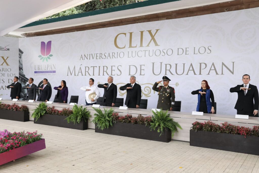 El presidente municipal de Uruapan, Carlos Alberto Manzo Rodríguez, orador oficial del acto, recordó la lucha de los Mártires de Uruapan por la libertad nacional, quienes fueron fusilados por las fuerzas imperialistas.