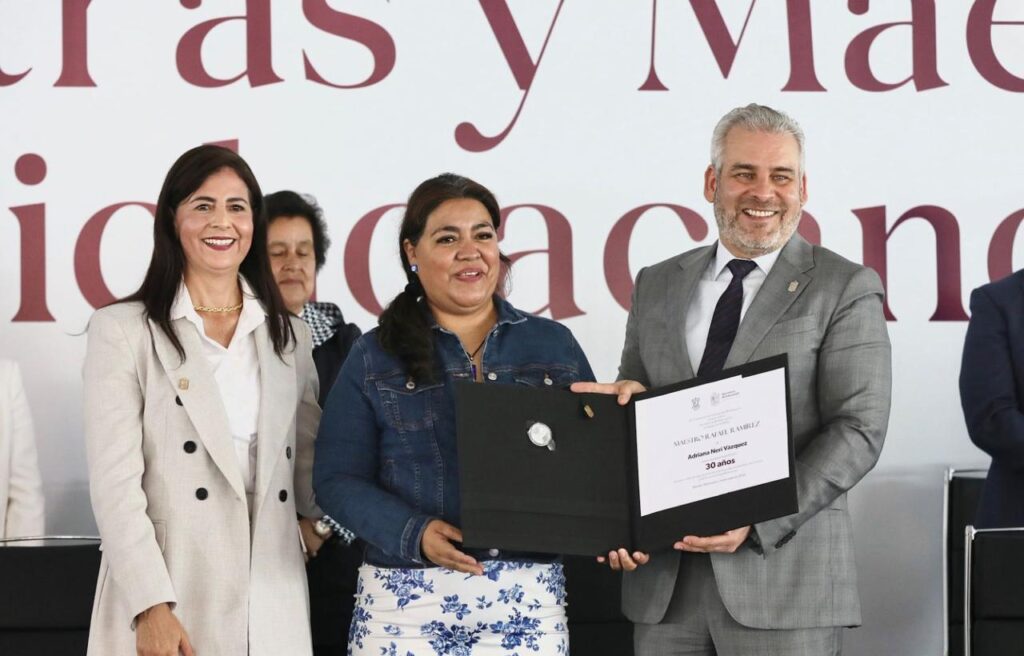 “Era una injusticia total”, dijo el mandatario, al señalar que una de las consignas de su gobierno es que, sin educación no hay desarrollo, civilidad, ni transformación. “Por eso la educación es primero; con las maestras y maestros de Michoacán todo, sin ellos nada. Desde el inicio de mi administración hemos trabajado por saldar deudas históricas con el magisterio”, destacó.