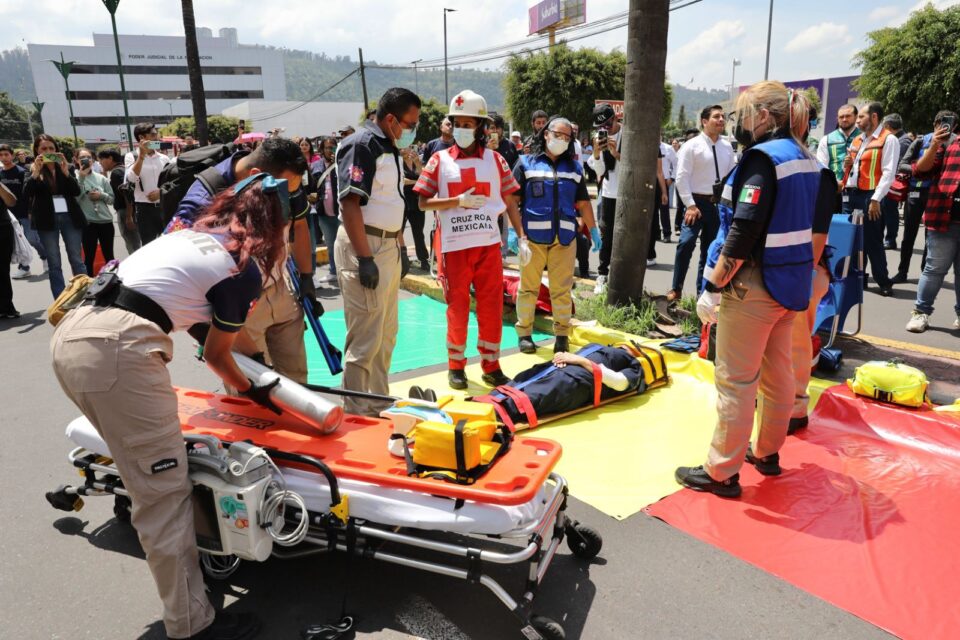 Como resultado, se evacuaron 3 mil personas en un tiempo de 10 minutos y se realizó la extracción simulada de dos personas atrapadas, además de la atención a ocho lesionados hipotéticos.