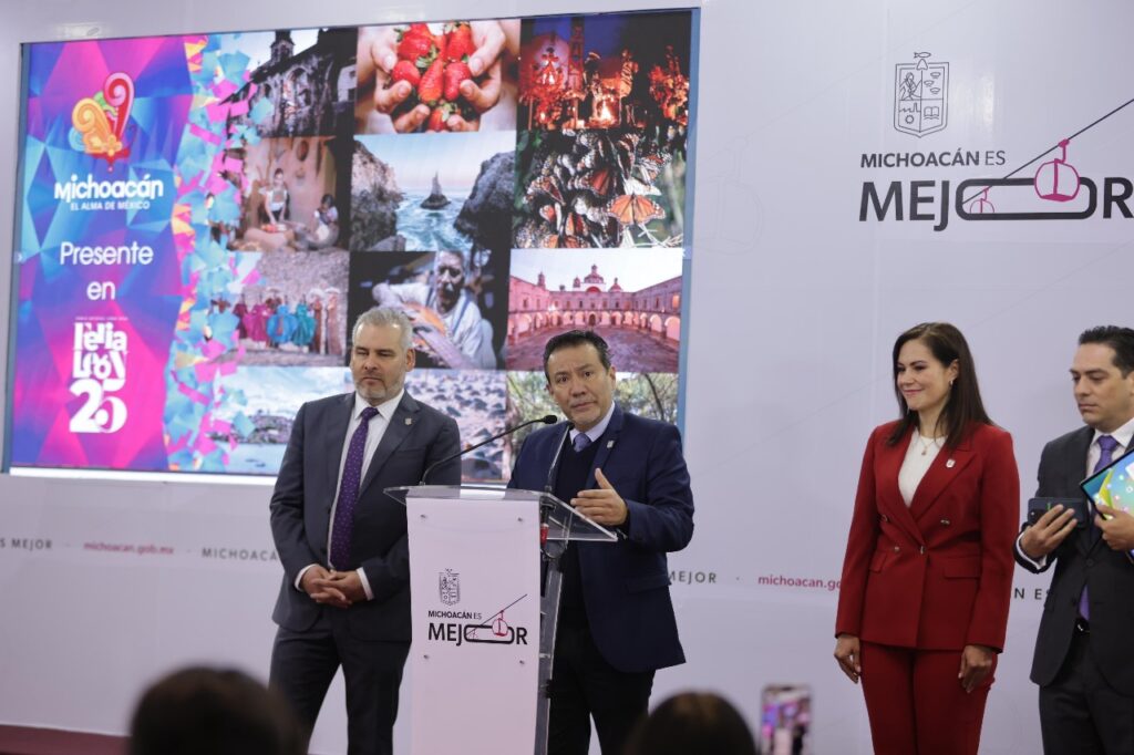 Morelia, Michoacán, 13 de enero de 2025.- Michoacán está por tercer año consecutivo en la Feria Estatal de León, donde se promocionan diversos atractivos del estado, como los santuarios de la Mariposa Monarca y la K’uínchekua, informó el gobernador Alfredo Ramírez Bedolla.
