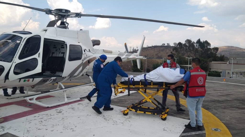 Tras lo anterior, los paramédicos de vuelo de la institución brindaron atención médica prehospitalaria a la paciente, misma que al arribar al nosocomio fue recibida para su pronta atención.