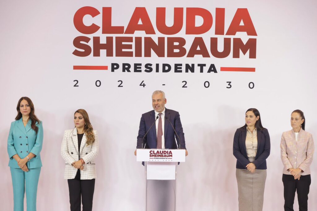 Ciudad de México, 7 de agosto de 2024.- El gobernador Alfredo Ramírez Bedolla presentó a la presidenta electa Claudia Sheinbaum Pardo, proyectos de infraestructura hidráulica, carretera y de movilidad para el desarrollo de Michoacán.