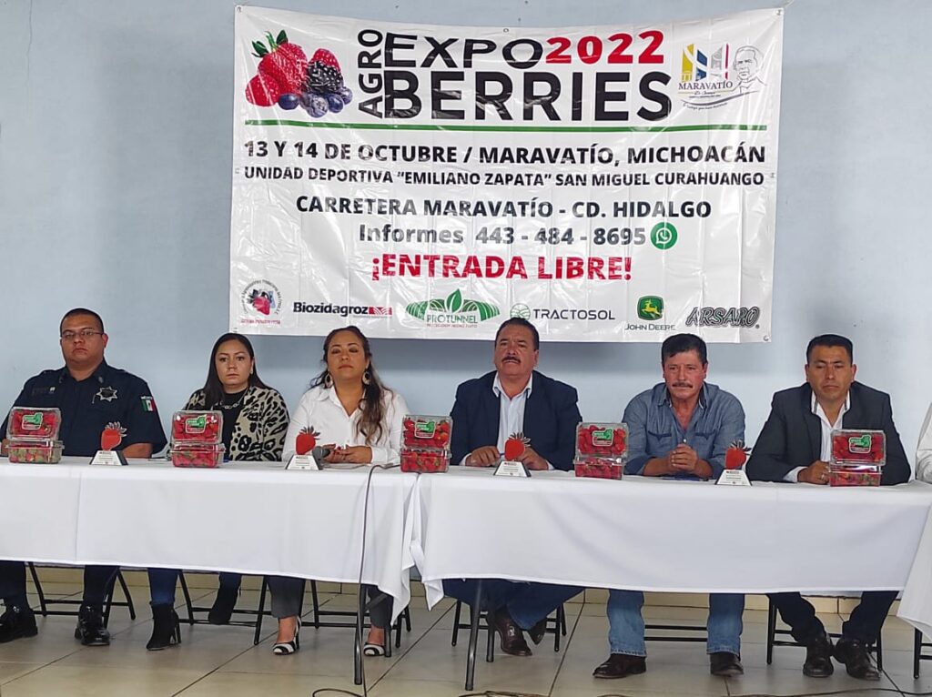 Maravatío, Michoacán.- Mediante rueda de prensa se presentó la Expo Agro Berries 2022 que por segundo año consecutivo se realizará en el municipio de Maravatío, el 13 y 14 de octubre en la Unidad Deportiva “Emiliano Zapata” en la Tenencia de San Miguel Curahuango.