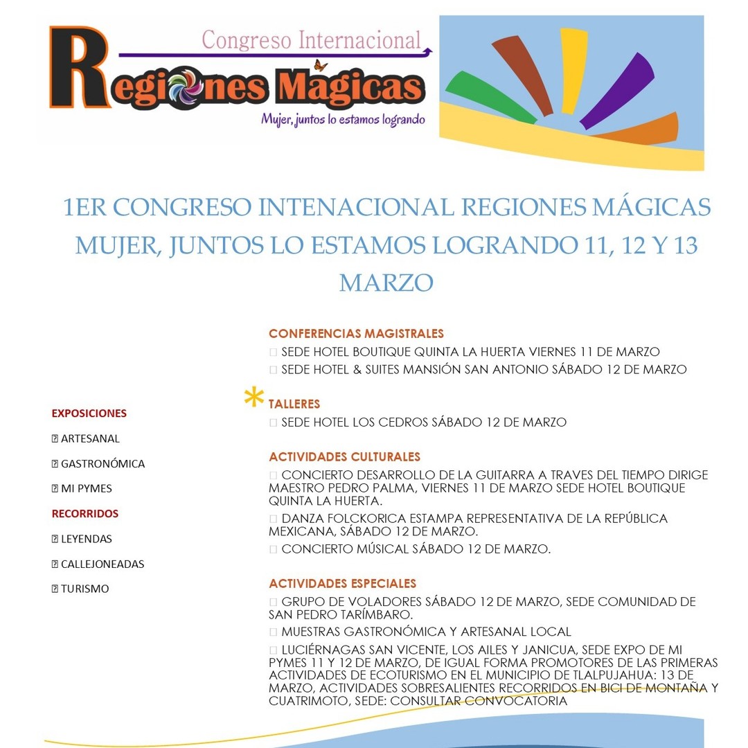 Maravatío, Michoacán.- Del 11 al 13 de marzo de 2022 se realizará el primer congreso internacional regiones mágicas en el municipio de Tlalpujahua.