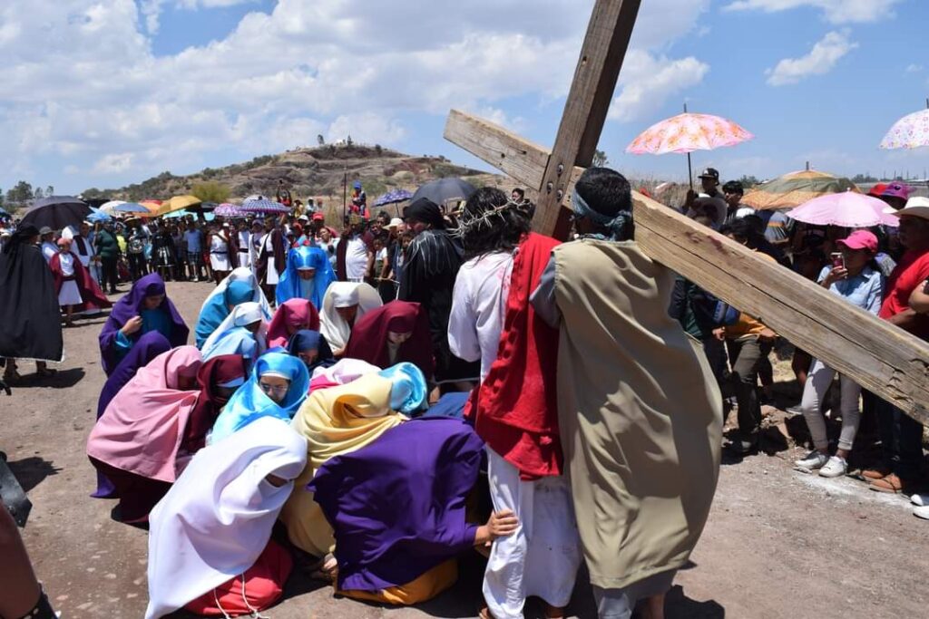 El viacrucis comenzará a las 11 de la mañana para llegar a las 12:30 al cerrito de mata en dónde se realizará la representación de la cruxifición de jesús.