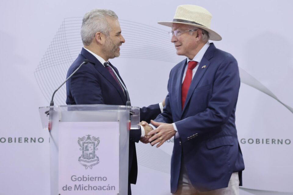 Morelia, Michoacán, 24 de junio de 2024.- Tras la reunión encabezada por el gobernador Alfredo Ramírez Bedolla con el embajador de Estados Unidos en México, Ken Salazar, se acordó la implementación de un modelo de seguridad que operará de manera permanente para los inspectores del Servicio de Sanidad Animal y Vegetal (Aphis), del departamento de Agricultura de Estados Unidos, encargados de certificar los frutos, luego de que el pasado viernes se reanudó la certificación de aguacate y mango.
