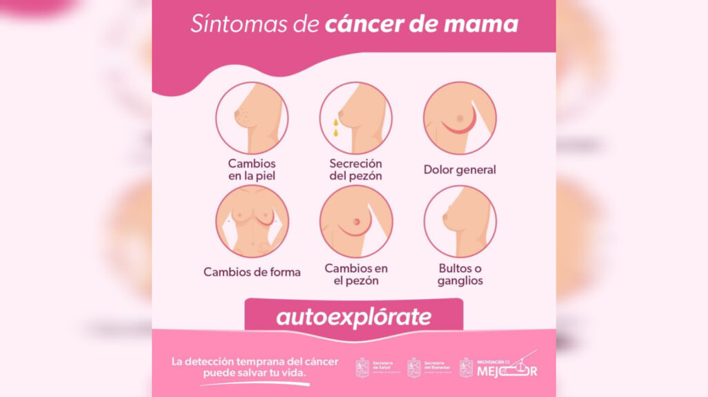 Morelia, Michoacán, 12 de octubre de 2024.- Si sientes dolor persistente en uno o ambos senos, notas cambios en el pezón, secreciones inusuales o detectas bultos, es importante acudir de inmediato al médico, ya que estos síntomas podrían ser indicativos de cáncer de mama.
