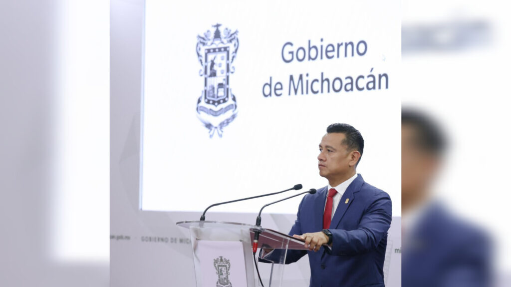 Morelia, Michoacán, 17 de octubre de 2024.- El Gobierno de Michoacán exhorta a los normalistas a conducirse por la vía del diálogo y que sus manifestaciones sean de forma pacífica, señaló el secretario de Gobierno, Carlos Torres Piña.
