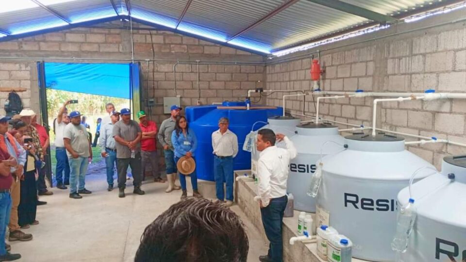 Esta acción corresponde al programa insignia Agrosano, que consiste en la instalación de un módulo de reproducción de microorganismos benéficos; en el caso de la comunidad de Pueblo Nuevo, cinco productores se organizaron para su puesta en operación y así contar con los insumos para autoconsumo, si bien estarán en posibilidad de atender a 200 productores que han adoptado las prácticas agroecológicas en esta región.